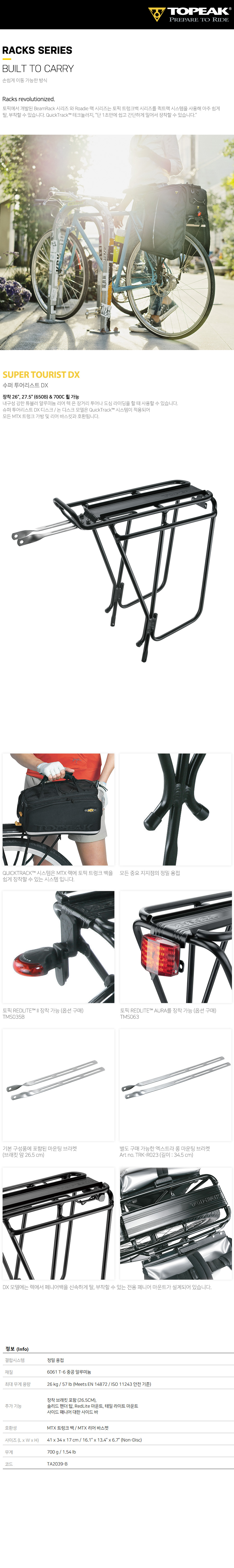 디스크 브레이크가 아닌 26인치 27.5인치 700C 휠에 효과적으로 대응하는 짐받이 입니다.