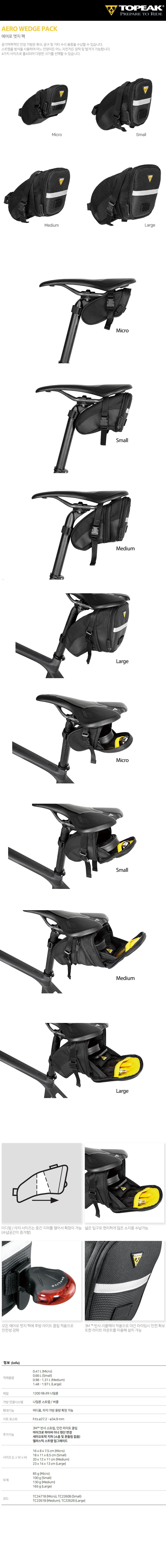 토픽의 오랜 역사와 함께한 에어로 웻지 가방은 총 4가지 사이즈로 용도와 목적에 맞게 적합하게 사용할수있는 자전거 안장 가방입니다.