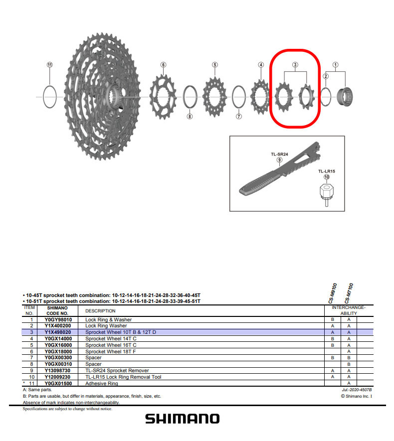 CS-M8100 스프라켓 유닛 낱장 10-12T