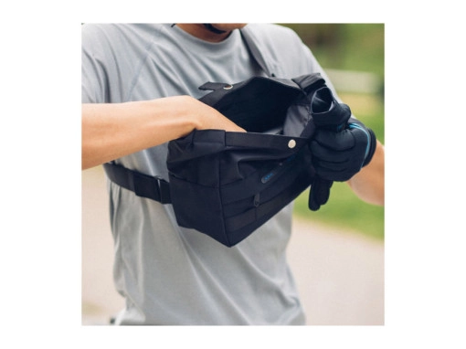 로우로우(RAWROW)와 함께 만든 라이더를 위한 힙색. 도심 속 가벼운 수납 및 가까운 거리는 스트랩을 단단하게 조정하여 더 민첩한 이동이 가능하며, 장거리 이동시에는 핸들바에 고정하여 사용 가능합니다.