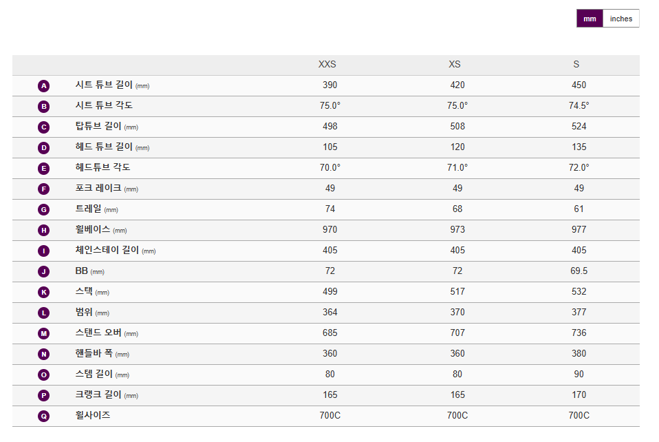 사이즈표는 참고용이며, GIANT 또는 Liv 대리점과 상담, 문의하여 정확한 사이즈를 확인하시기 바랍니다.