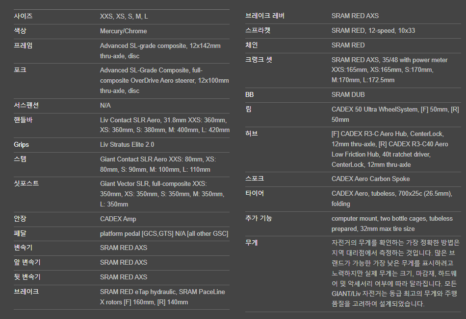 Optimized Aerodynamics 새롭게 설계된 프레임세트와 통합된 구성품은 효율적인 동력 전달로 빠른 속도와 지속적인 클라이밍 능력을 제공합니다. | Sprinting Efficiency 최대 33mm의 타이어 클리어런스는갓 포장된 노면부터 비바람이 몰아치는 노면까지 어떤 노면에서도 핸들링 성능저하 없이 라이드를 즐길 수 있음을 의미합니다. 플레어 핸들바는 폭발적인 스프린트와 다운힐에서 컨트롤과 자신감을 불어넣어줍니다. | Seamless Integration 절단된 에어로 타원형 튜브 형태와 새로운 내부 케이블 라우팅 디자인으로공기저항을 줄이고 속도를 높이며 지나가는 풍경을 감상할 수 있습니다. |